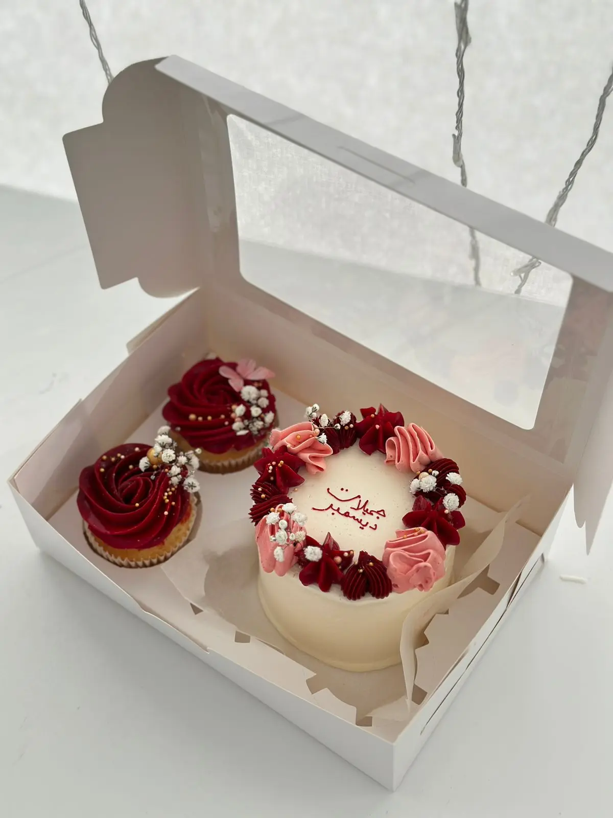 ✨ يمكنك/ي اختيار بوكس هدية عيد الميلاد الجميل الذي يحتوي على ميني كيك لذيذة و 2 كب كيك 😋 بسعر 15 دينارًا فقط! 🥳 إنها فكرة رائعة لإظهار اهتمامك/ك وإدخال الفرحة على قلب صديقك/صديقتك دون الحاجة لإنفاق الكثير. 😉