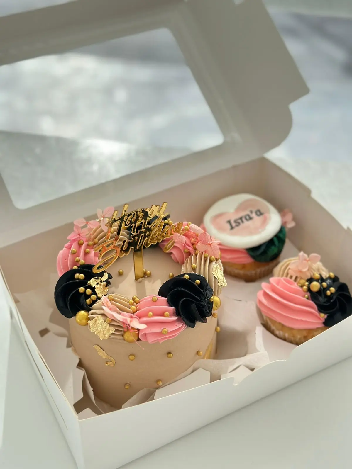 - تصاميم أنيقة للبنات الكبار 🎉: للبنات الكبار، اختاري/ي هدية عيد ميلاد أنيقة وراقية! ✨ بوكس هدية يحتوي على ميني كيك و كب كيك بتصميم فاخر 🎂 سيكون خيارًا مثاليًا لإظهار اهتمامك/ك و تقديرك/ك. 💖