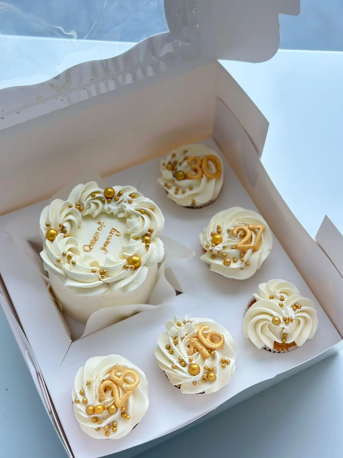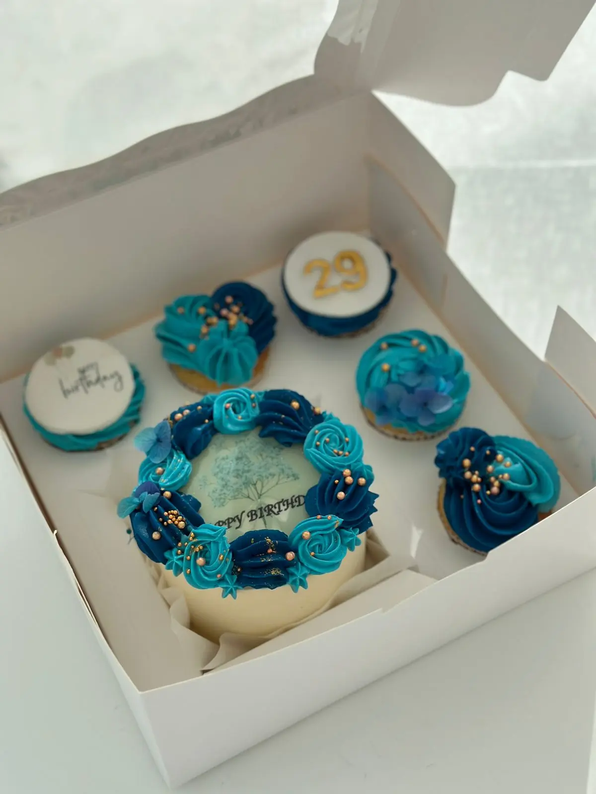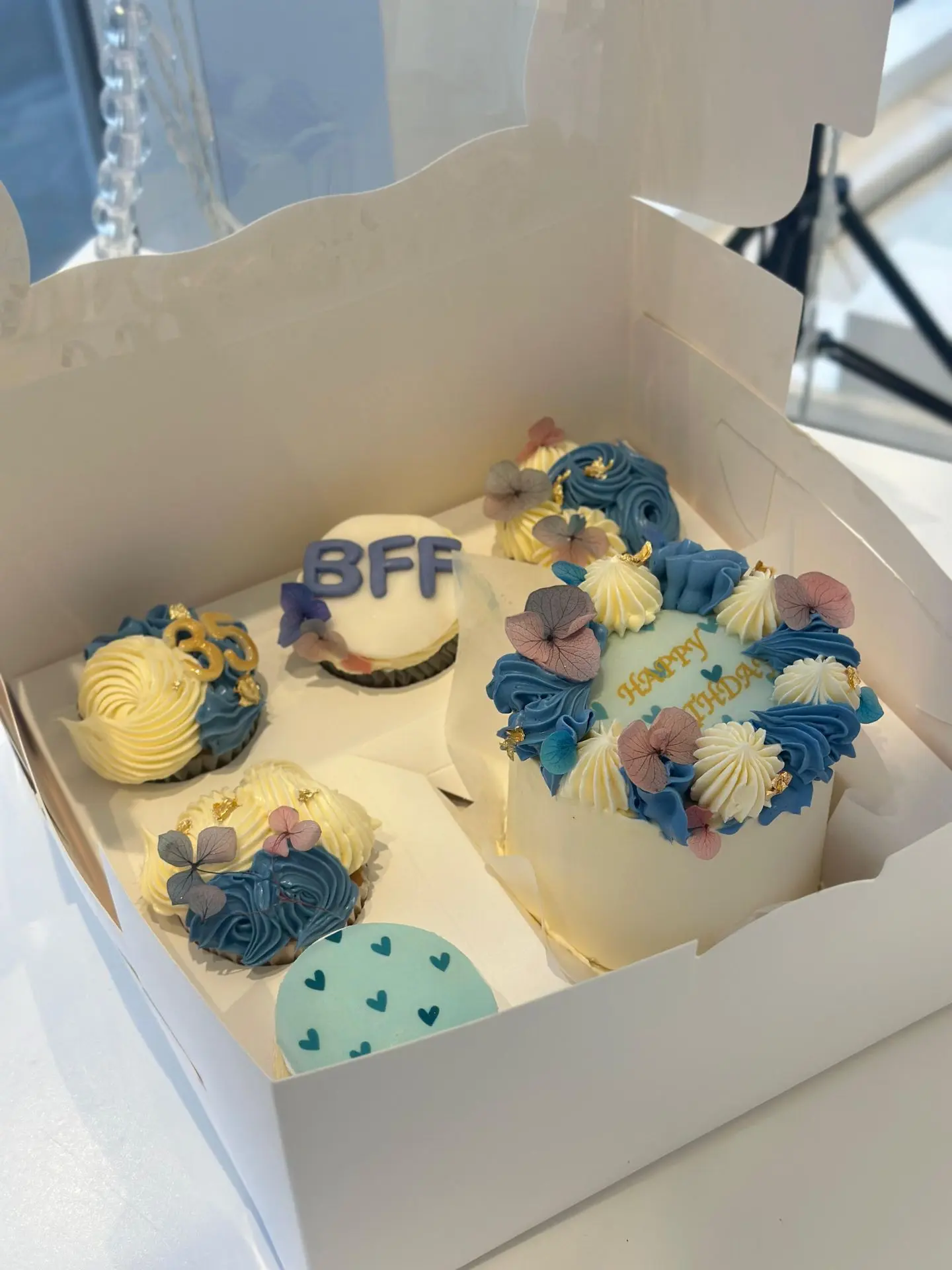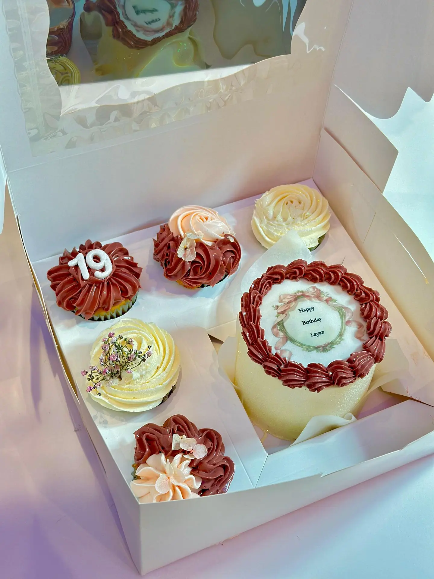 تُعتبر هدايا التخرج للبنات فرصة للتعبير عن مدى فخركِ بإنجازاتهنّ. 🎀 بوكس التخرج يُقدّم لكِ مزيجًا مثاليًا من الحلويات الفاخرة، مثل الميني كيك والكب كيك المُزينة بكريمة الزبدة، مع إمكانية تخصيص التصميم لإضافة لمسة شخصية تُعبّر عن ذوقها الفريد. أضيفي صورتها أو عبارة مُميزة لتجعليها تشعر بمدى اهتمامكِ.