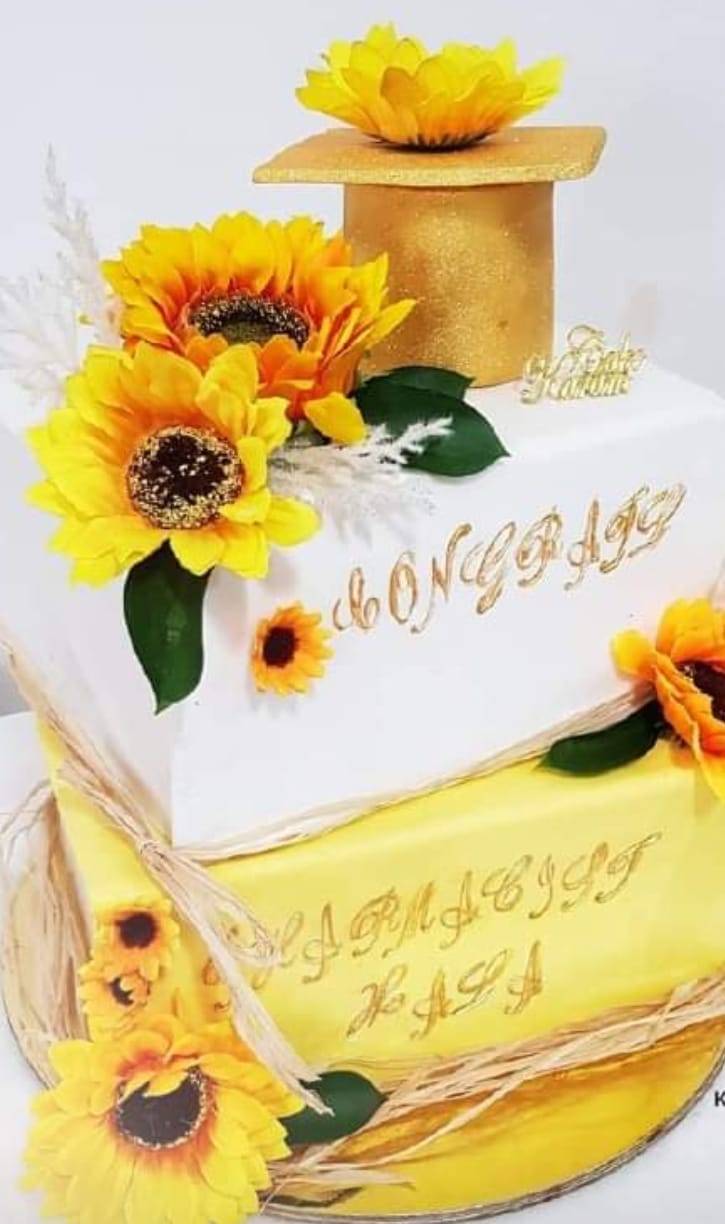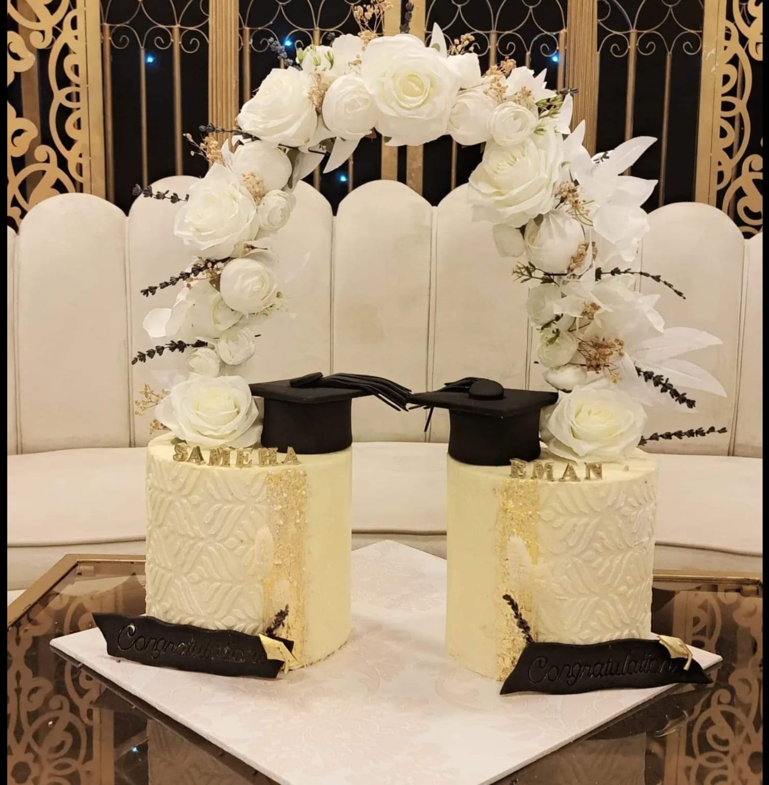 ثانياً، لا يكتمل فرح التخرج دون كيكة تخرج مميزة تعكس شخصيتك وتفردك، ولهذا، نقدم خدمة تصميم كيكة خاصة بك، حيث يمكنك اختيار التصميم الذي يناسب ذوقك وتفضيلاتك، لتحصل على قطعة فنية لا تُنسى تحمل اسمك وصورتك وتاريخ تخرجك.